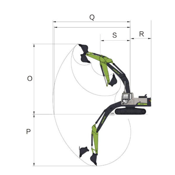 | R Maximum digging distance from the ground | 2300 |